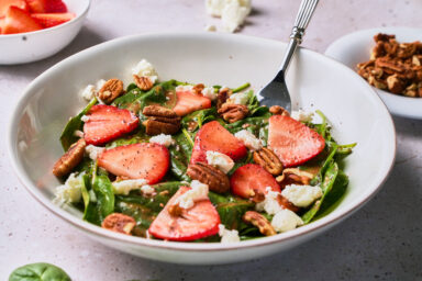 This fresh strawberry spinach salad strikes the perfect balance of sweet, tangy, and nutty. Tossed with a light strawberry poppyseed dressing, toasted pecans, and creamy goat cheese, it’s a vibrant side or light meal that feels like summer in every bite.