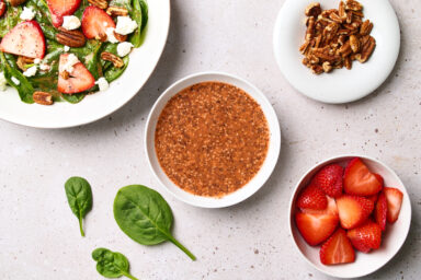 Light, fruity, and tangy, this strawberry vinaigrette is naturally sweetened and perfect for drizzling over fresh berry and leafy green salads.