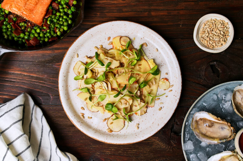 This dish was inspired by a visit to one of my favorite restaurants in Nashville, Henrietta Red. Their Jerusalem artichoke (sunchoke) and apple salad was a very memorable dish and so I set out to create a home version that you can impress your friends with, that is also easy to make. It’s crisp, refreshing, and a welcomed break from the normal leafy green salads most people stick to at home.