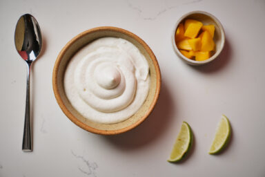 This lime-infused coconut whip is our go-to when we want a dairy-free, lightly sweet topping that brings brightness and a velvety texture to tropical desserts.