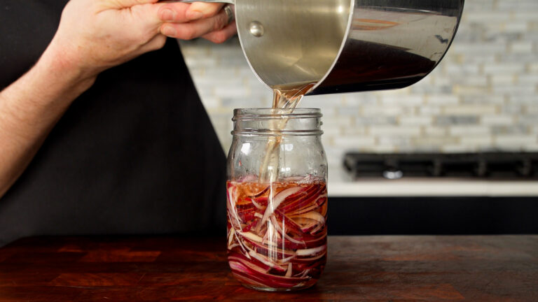 Inspired by one of the best restaurants in the world, Eleven Maddison Park, these pickled red onions hit different. Most pickled onions slap you over the head with sharp, puckering acidity. These are different. The white balsamic creates a rounder, more complex flavor that enhances whatever you put them on instead of overpowering it. Sliced extra thin into delicate half-moons, the are perfect with tacos, on sandwiches, and in grain bowls . Once you have a jar in your fridge, you’ll wonder how you ever lived without them.