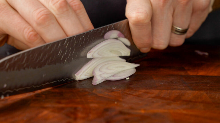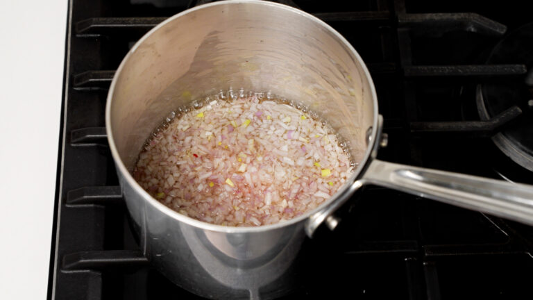 The brief simmer softens the shallots just enough to mellow their sharp raw bite while still keeping some texture. It also helps the brine penetrate faster.